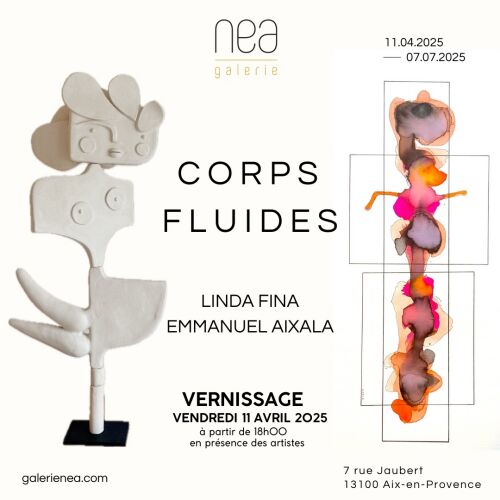 Galerie nea présente CORPS FLUIDES, une exposition en duo qui fait dialoguer les œuvres de deux artistes aux univers distincts. Elle mêle l’organique et le géométrique, le fluide et le figé à travers des créations en céramique et des aquarelles.
