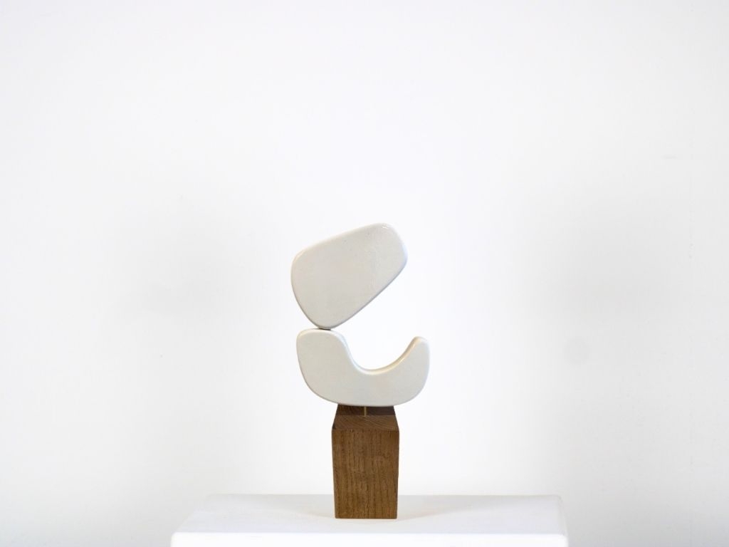 Totem en céramique écru